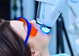 (歯科医院で行う)高濃度の薬剤と専用の光を使用して歯を白くする方法です。