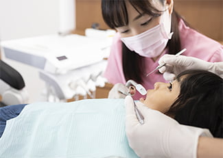 虫歯治療後の良い口内状態を維持するために、定期検診をご案内しています。お子様の歯は柔らかいため、虫歯になるとあっという間に進行することから、お口の中を小まめにチェックすることが大切です。加えて、普段のブラッシングで磨き残している部分がないか、ぐらついてる歯がないかを確認し、お口のクリーニングも行っています。
