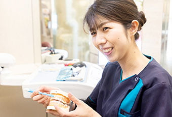 歯周病の原因である細菌をコントロールするには、毎日の歯磨きがしっかりと行われていることが重要です。そのため、お口のケアのプロである歯科衛生士が口内を確認して、患者様一人ひとりに合わせたブラッシング方法をご指導いたします。
